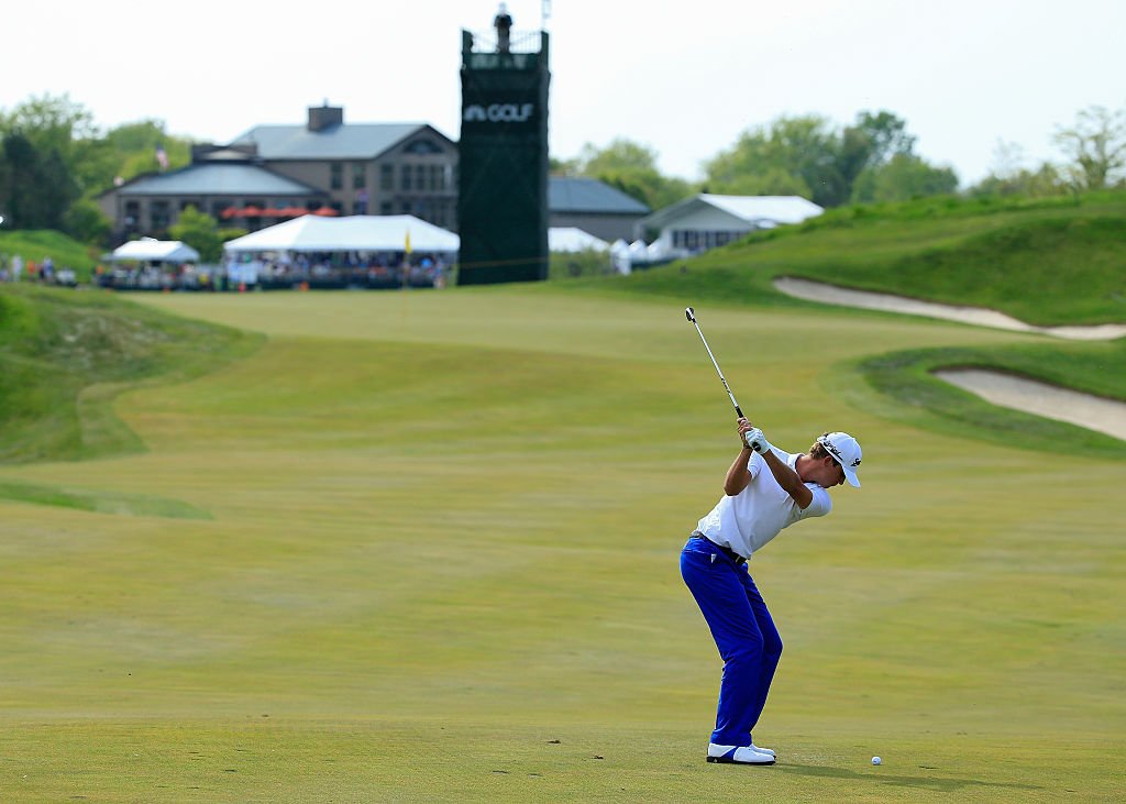 Smylie Kaufman hits his second shot on the 17th hole during the third round of the United Leasing Championship held at Victoria National Golf Club on May 2, 2015.